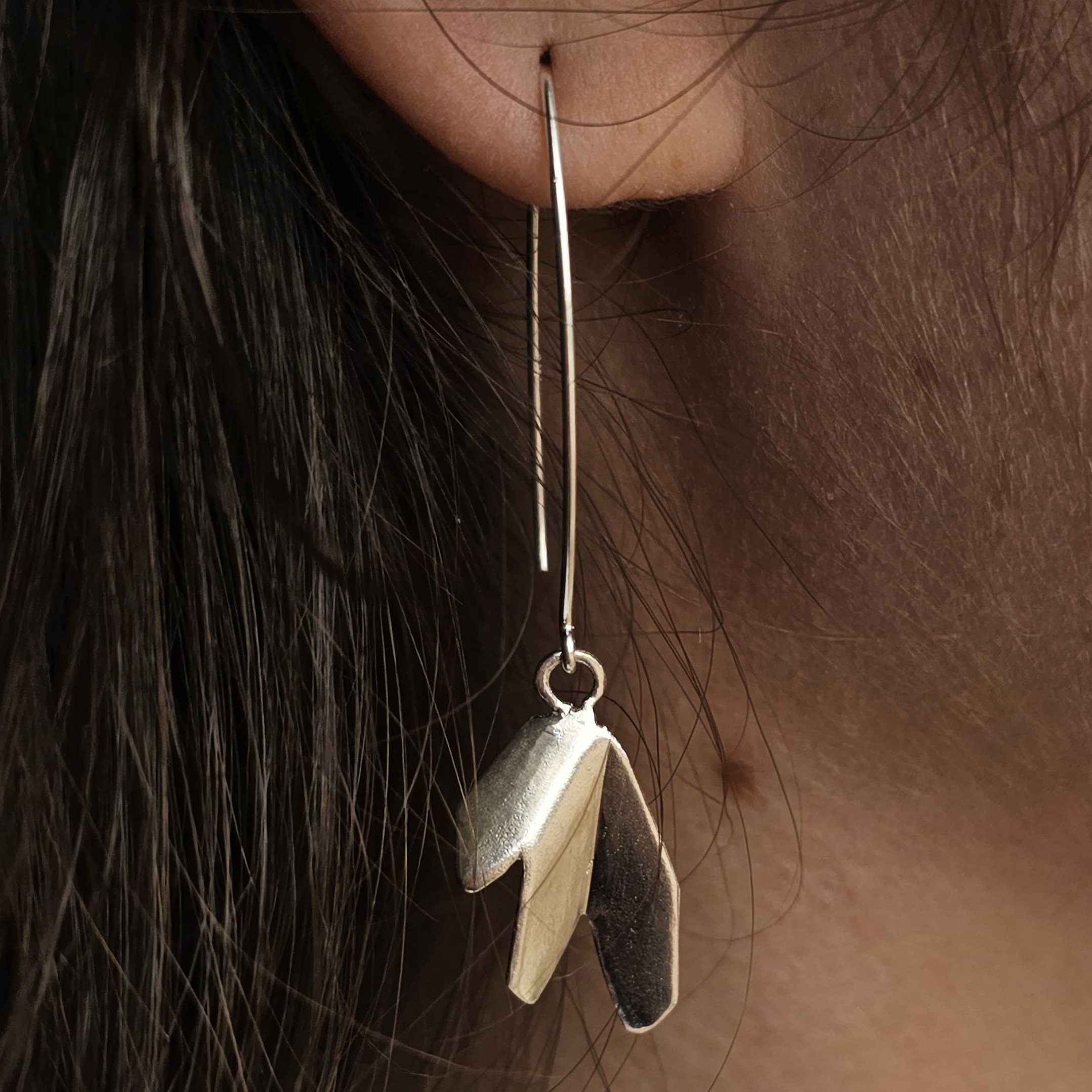 עגילי זווית מכסף 925 עיצוב ייחודי בעבודת יד, סמל לאיזון, זרימה והרמוניה פנימית.