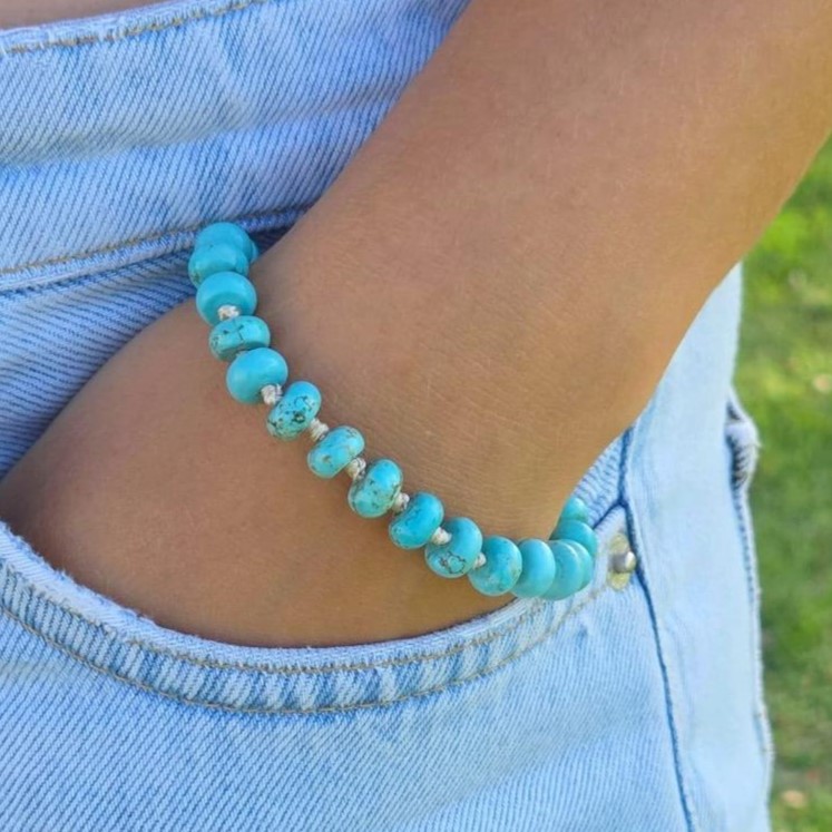 כולל: צמיד אבני טורקיז טבעיות + סוגר כסף איכותי