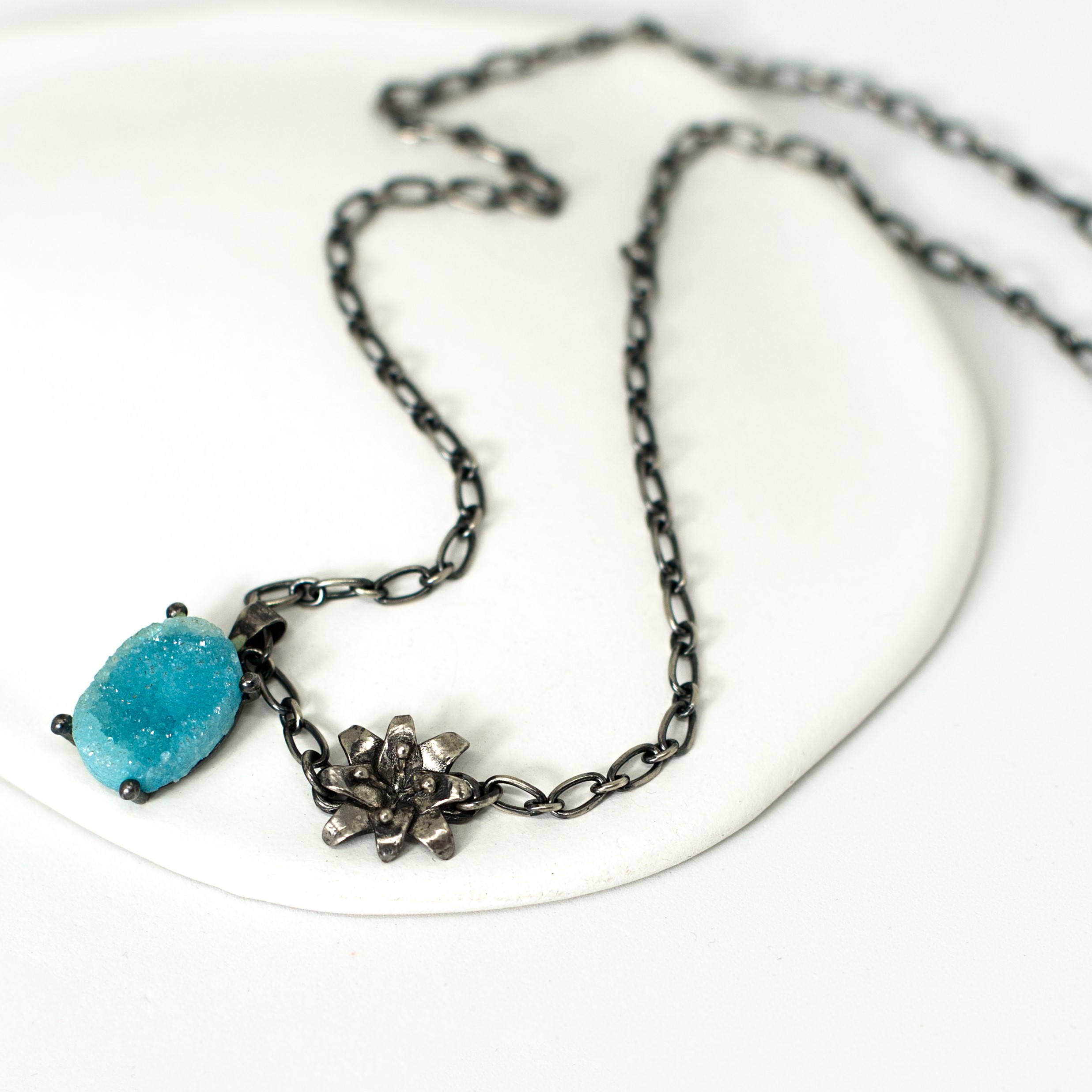 שרשרת חוף הסלעים מכסף 925 מושחר עם אגת דרוזי שילוב עוצמתי של ים, סלע והרמוניה פנימית.